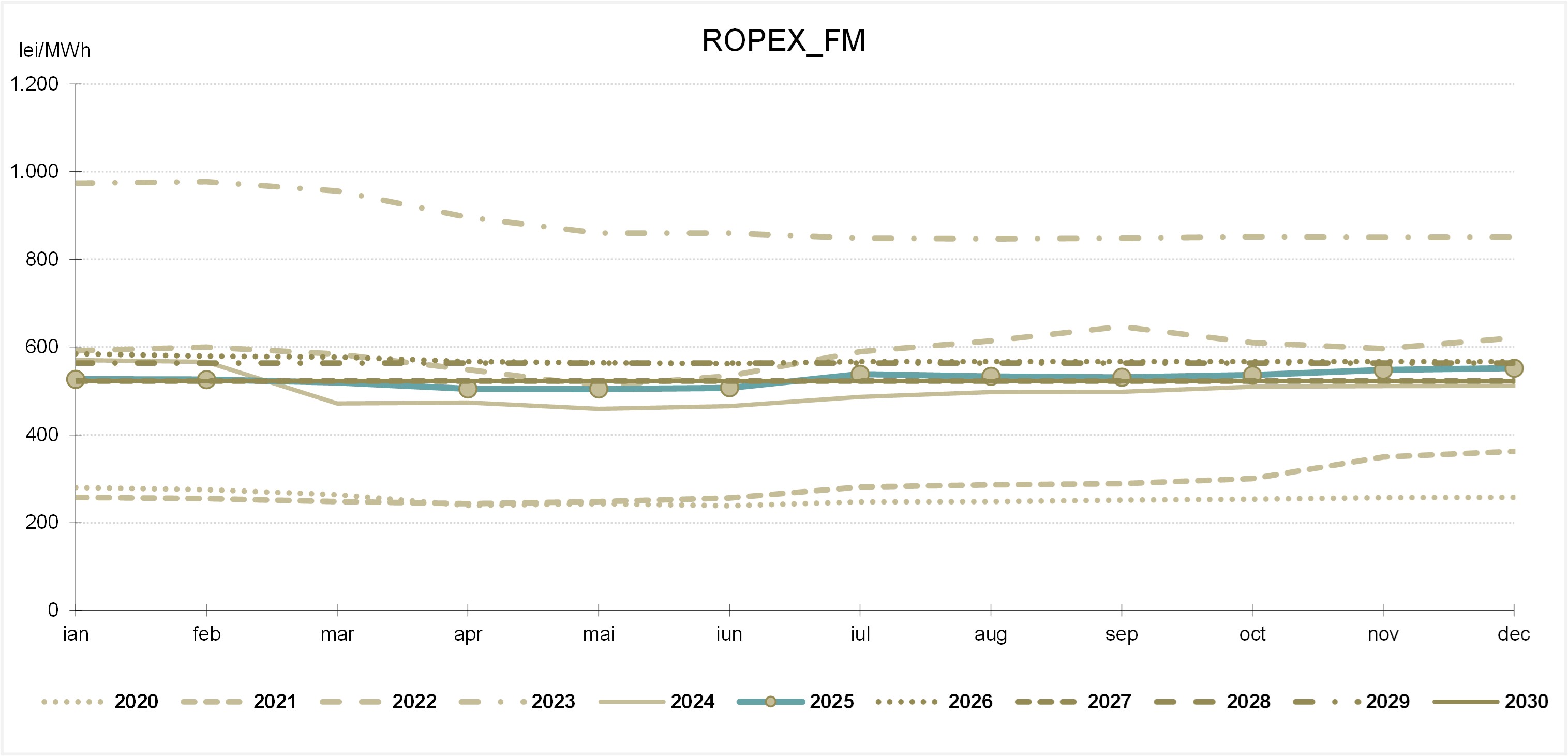 Livrările contractate pentru anul 2025 au însumat 5,5 TWh, respectiv o cotă de 11% din consumul anului 2025, prețul mediu ponderat fiind de 546,11 lei/MWh (109,40 EUR/MWh).