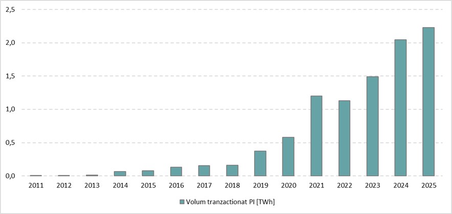 Volume tranzacționate pe PI: 2,2 TWh în 2025